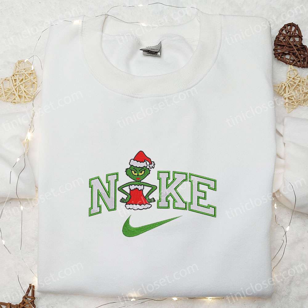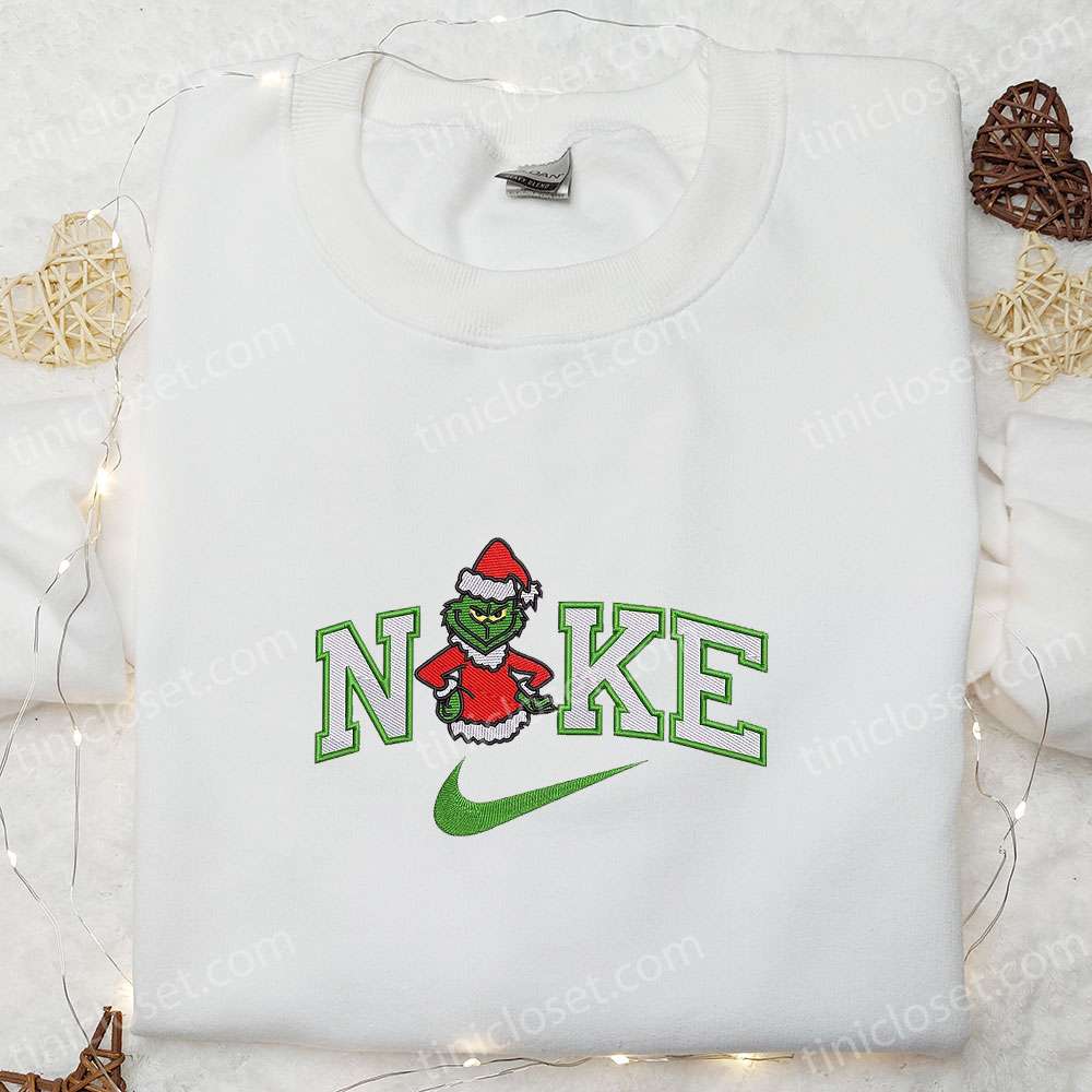Nike X Grinch Santa Embroidered T-shirt, Christmas Embroidered T-shirt, Nike Inspired Embroidered T-shirt