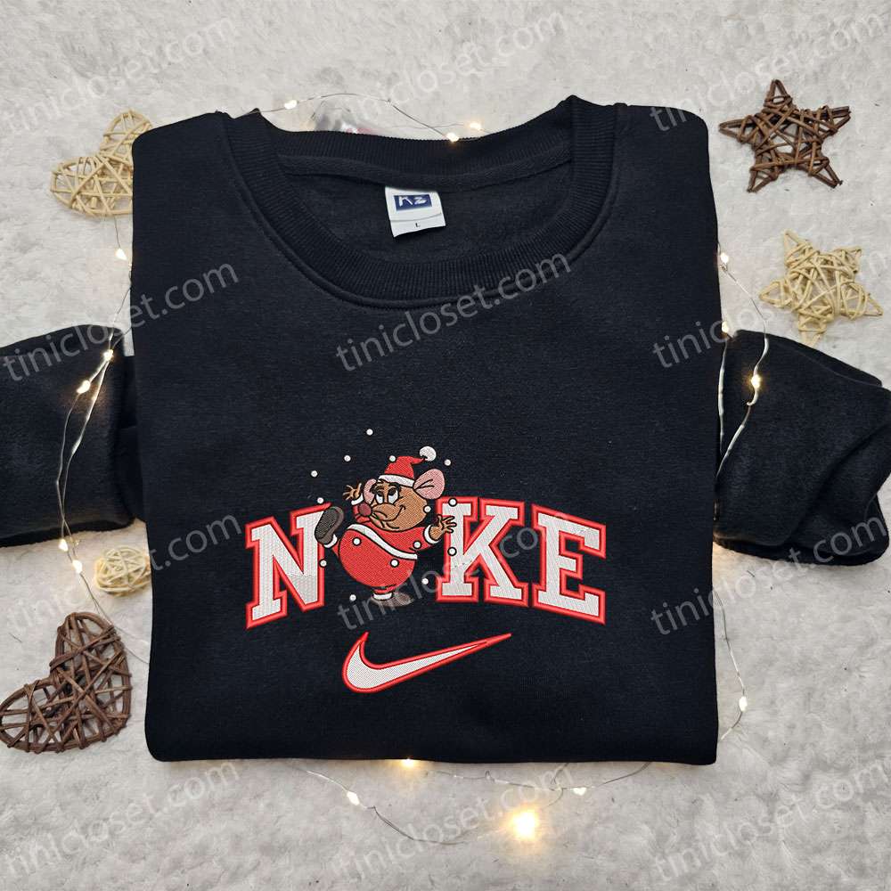Nike X Gus With Christmas Bells Embroidered Shirt, Disney Cinderella Cartoon Embroidered Hoodie, Christmas Embroidered T-shirt