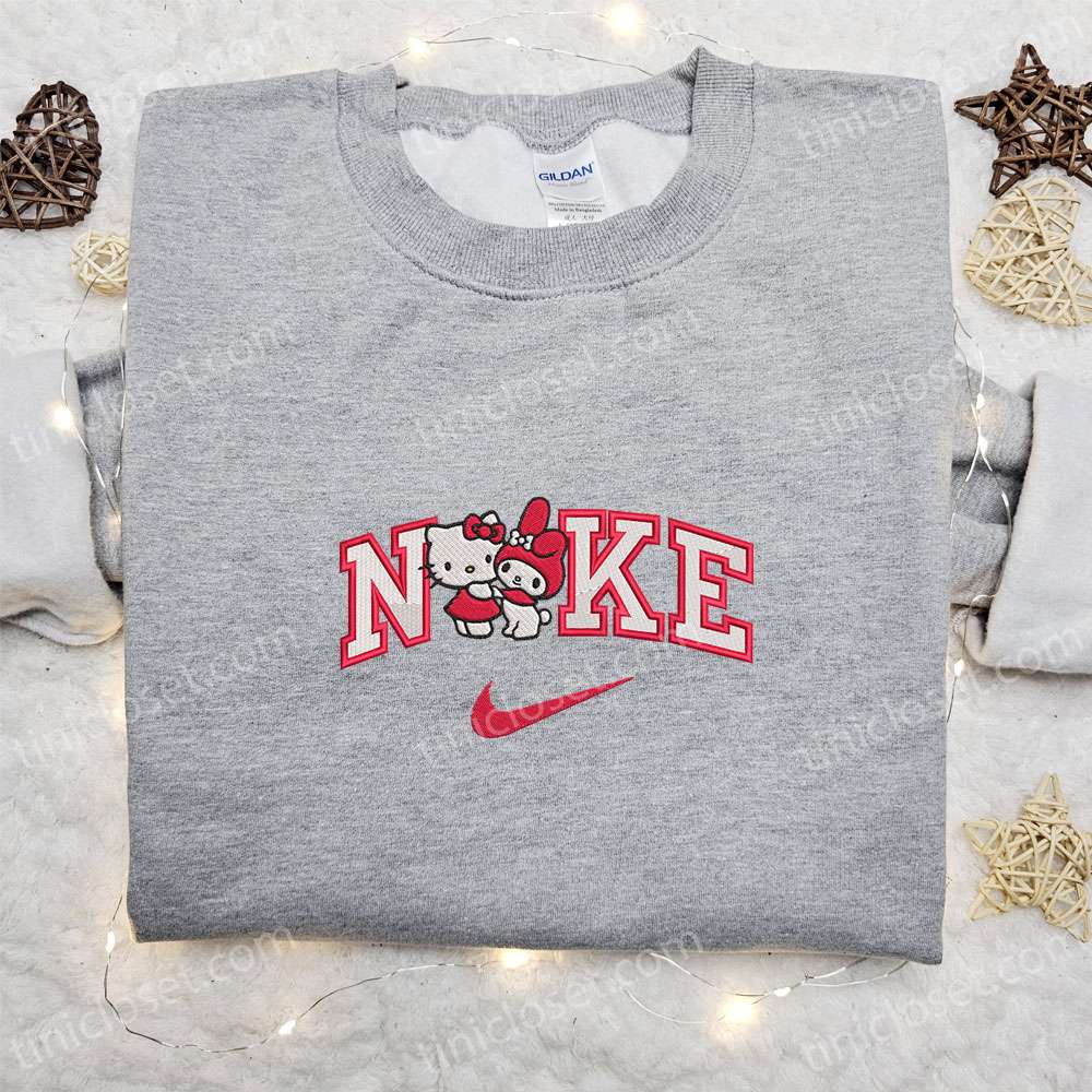 Nike X Hello Kitty And My Melody Embroidered Shirt, Cartoon Embroidered Hoodie, Best Gift Ideas