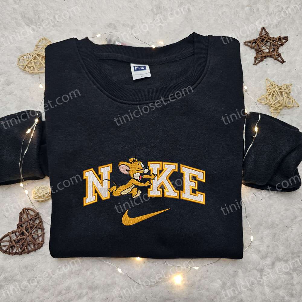 Nike X Jerry Run Embroidered Shirt, Tom And Jerry Cartoon Embroidered Shirt, Custom Nike Embroidered Shirt