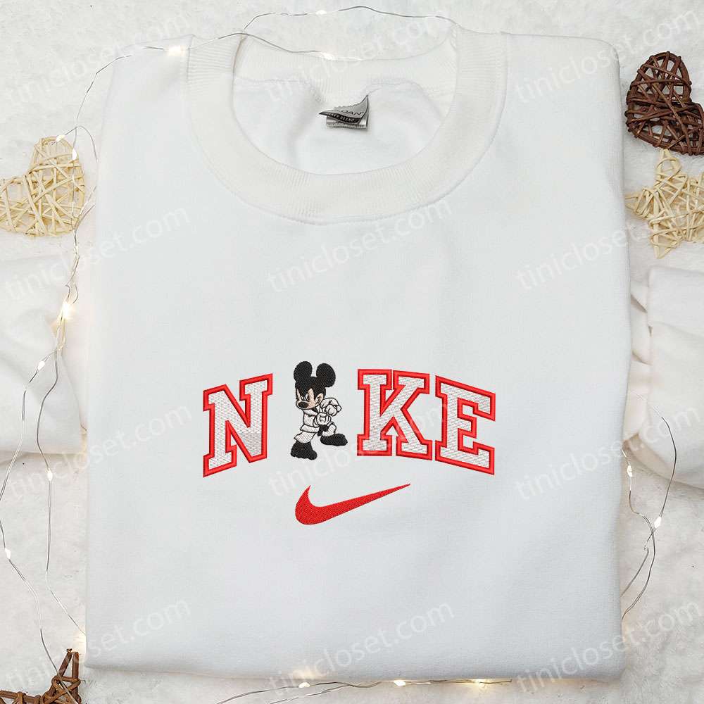 Nike X Karate Mickey Embroidered Shirt, Disney Characters Embroidered Shirt, Custom Nike Embroidered Shirt
