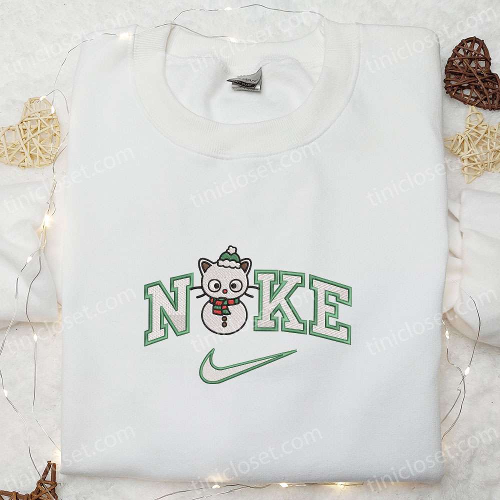 Nike X Kitty Snowman Embroidered Shirt, Cartoon Embroidered Hoodie, Best Christmas Gift Ideas