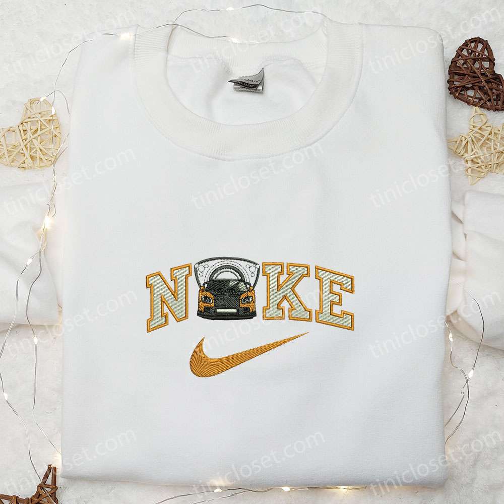 Nike X Orange Car Embroidered T-shirt, Transportation Embroidered T-shirt, Custom Nike Embroidered T-shirt