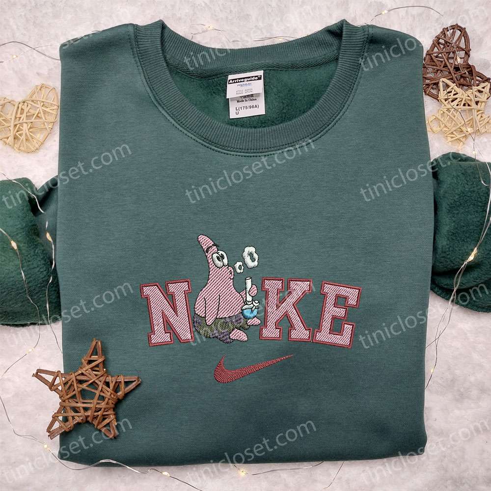 Nike X Patrick Smoke Embroidered Hoodie, Spongebob Squarepants Cartoon Embroidered Shirt, Nike Inspired Embroidered T-shirt