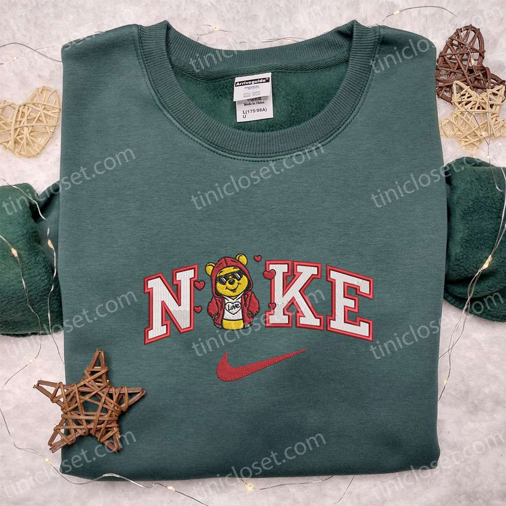 Nike X Pooh Boy Valentine Embroidered Hoodie, Winnie The Pooh Disney Embroidered Shirt, Valentine Embroidered Hoodie