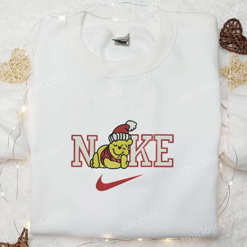 Nike X Pooh Xmas Sleeping Embroidered Shirt, Winnie The Pooh Disney Embroidered Hoodie, Christmas Embroidered Sweatshirt