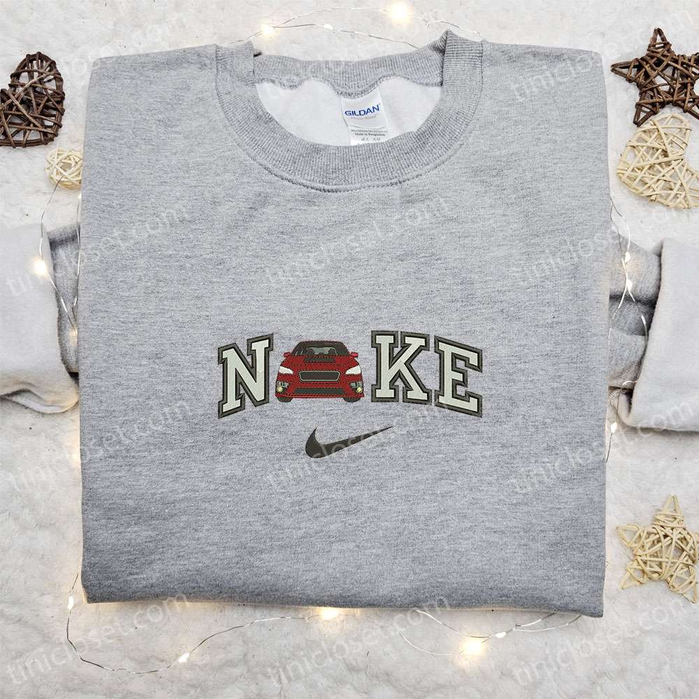 Nike X Red Car Front Embroidered Shirt, Transportation Embroidered Shirt, Nike Inspired Embroidered Shirt