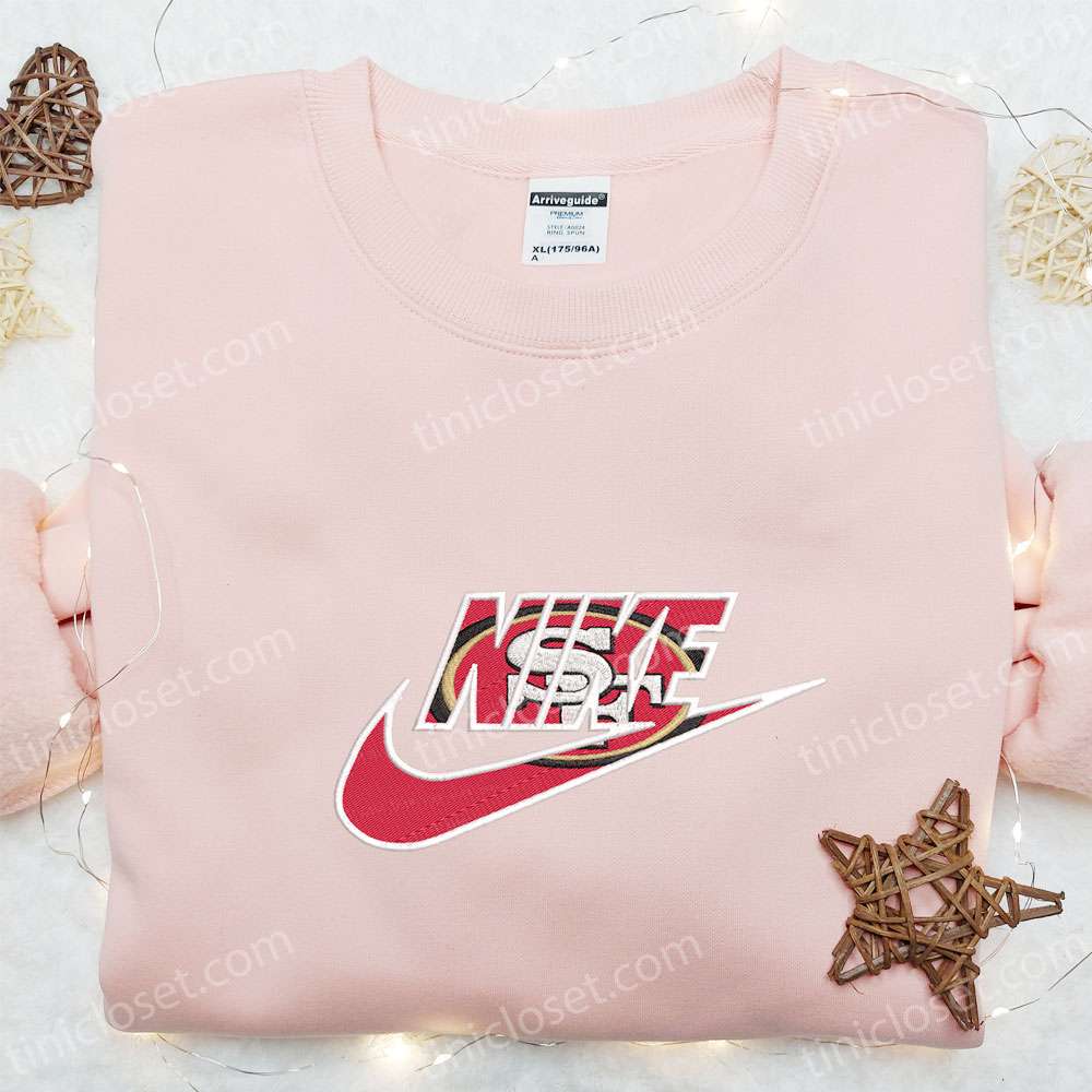 Nike X San Francisco 49ers Logo Embroidered Shirt, Nfl Sports Embroidered Shirt, Custom Nike Embroidered Shirt