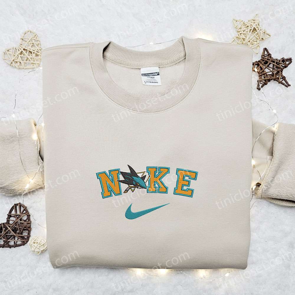 Nike X San Jose Sharks Embroidered T-shirt, Sports Embroidered T-shirt, Nike Inspired Embroidered T-shirt
