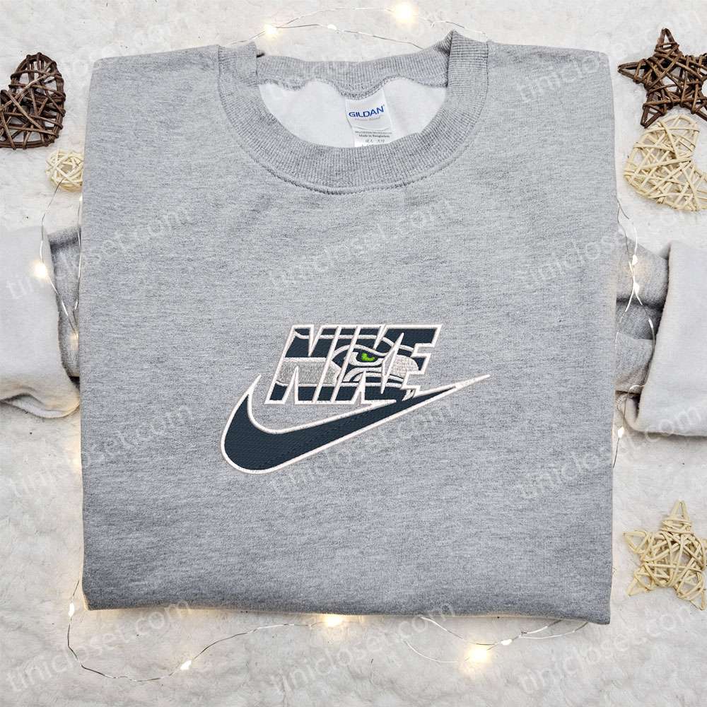 Nike X Seattle Seahawks Logo Embroidered Sweatshirt, Sports Embroidered Sweatshirt, Nike Inspired Embroidered Sweatshirt
