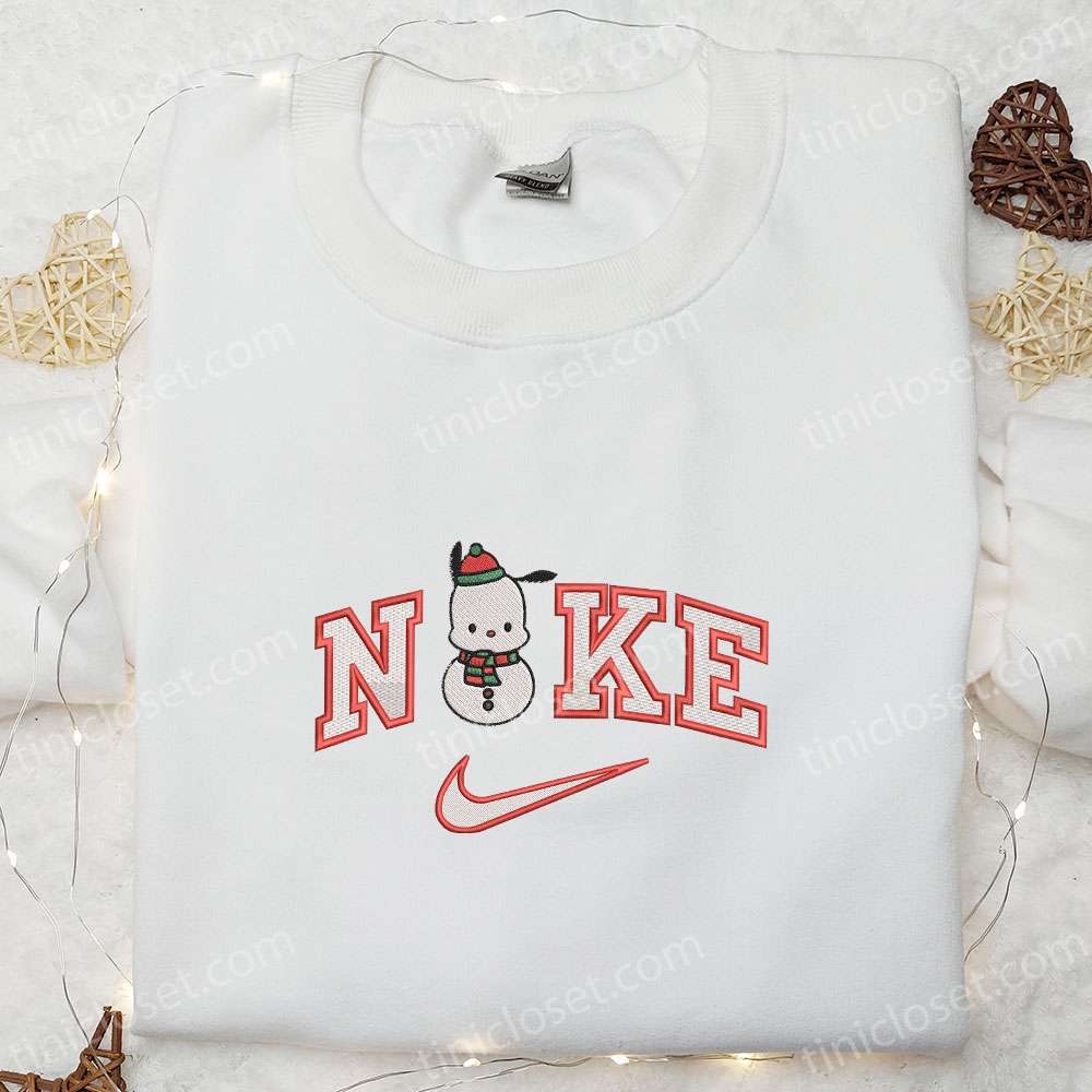 Nike X Snowman Dog Embroidered Shirt, Christmas Embroidered Hoodie, Nike Inspired Embroidered T-shirt