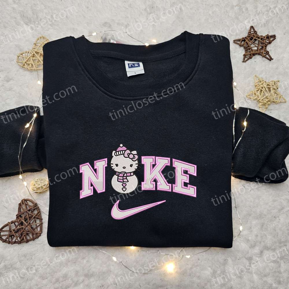 Nike X Snowman Kitty Christmas Embroidered T-shirt, Hello Kitty Cartoon Embroidered T-shirt, Christmas Embroidered T-shirt