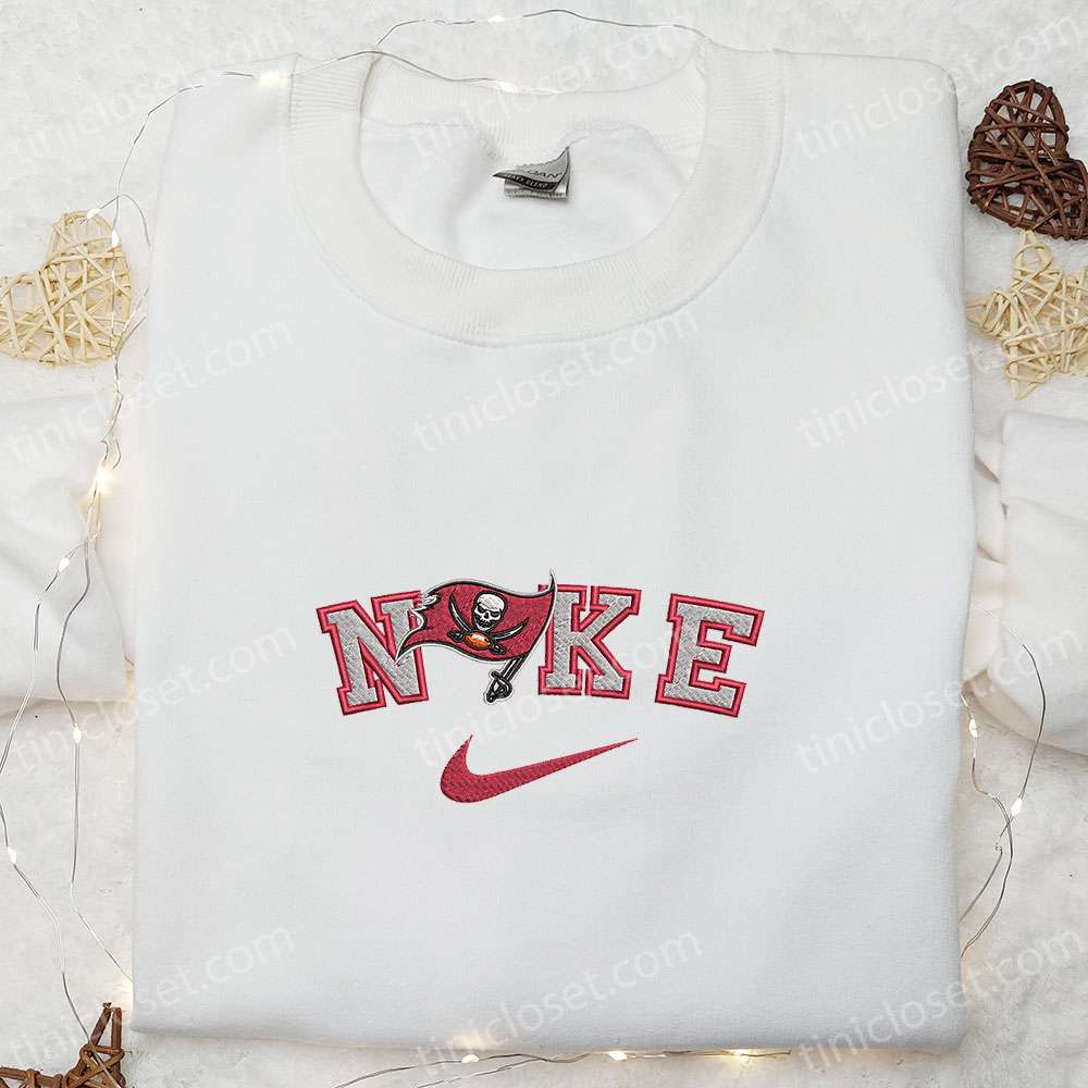 Nike X Tampa Bay Nfl Logo Embroidered T-shirt, Nfl Sports Embroidered T-shirt, Nike Inspired Embroidered T-shirt