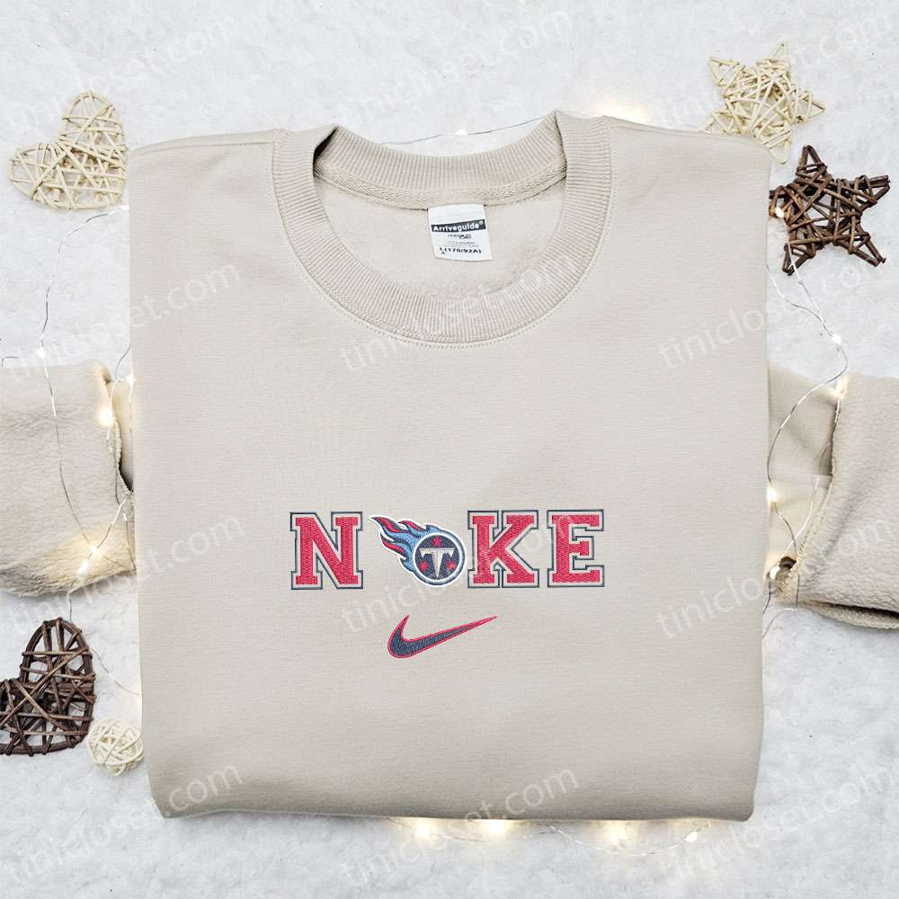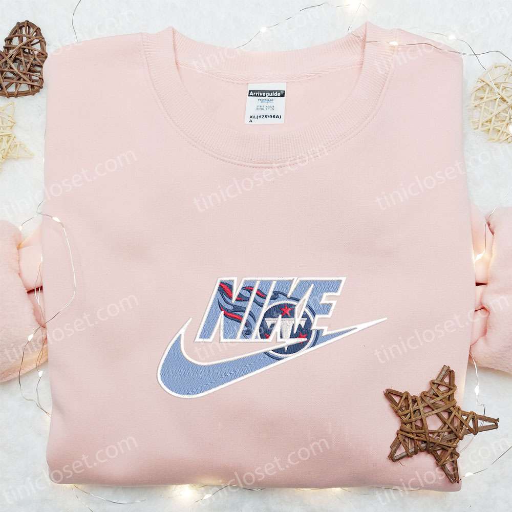 Nike X Tennessee Titans Nfl Logo Embroidered Shirt, Nfl Sports Embroidered Shirt, Nike Inspired Embroidered Shirt