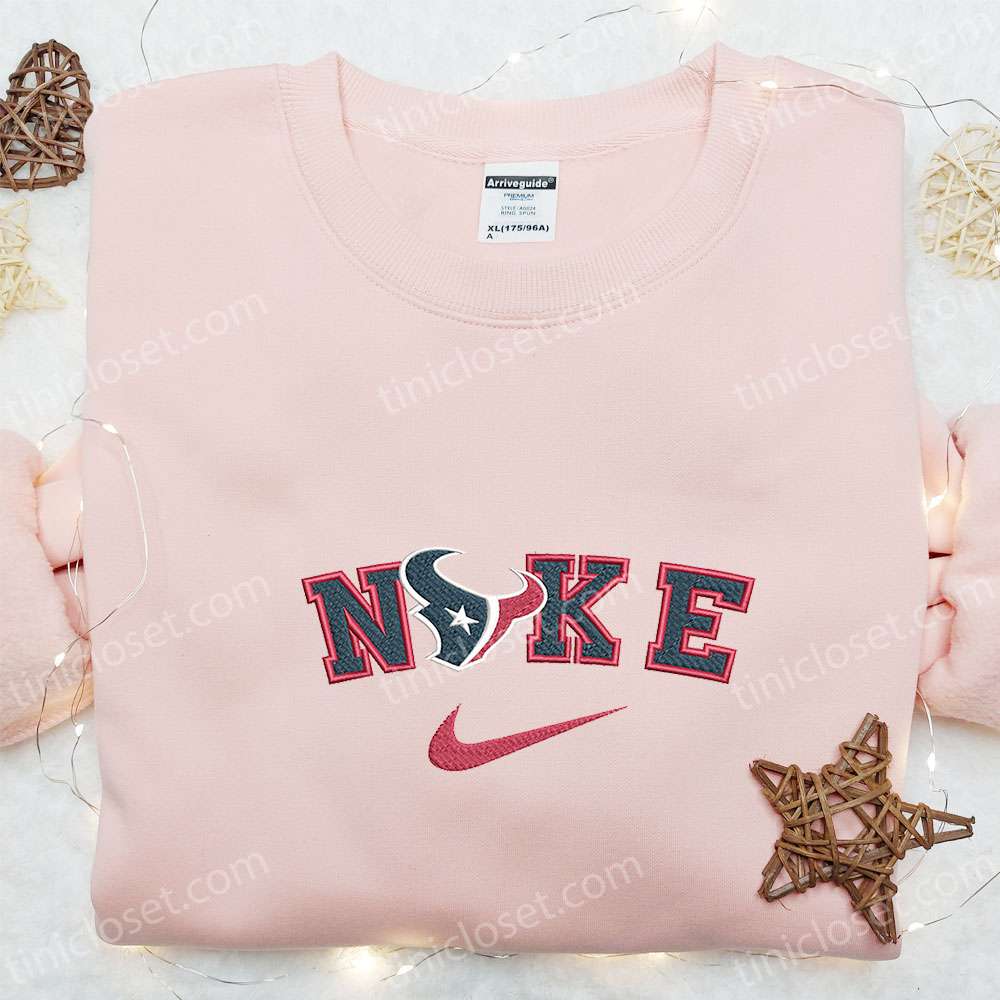 Nike X Texans Nfl Logo Embroidered Hoodie, Nfl Sports Embroidered Shirt, Nike Inspired Embroidered Hoodie
