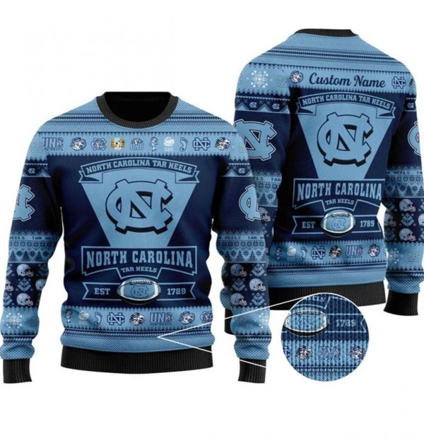 North Carolina Tar Heels Football Team Logo Personalized Ugly Christmas Sweater