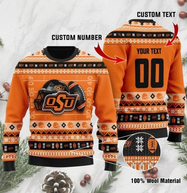 Oklahoma State Cowboys Custom Name Number Personalized Ugly Christmas Sweater