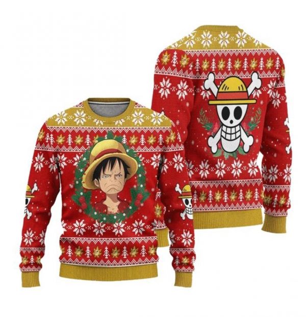One Piece Ugly Christmas Sweater Straw Hat Priate Xmas Gift