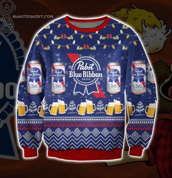 Pabst Blue Ribbon Beer Full Print Ugly Christmas Sweater