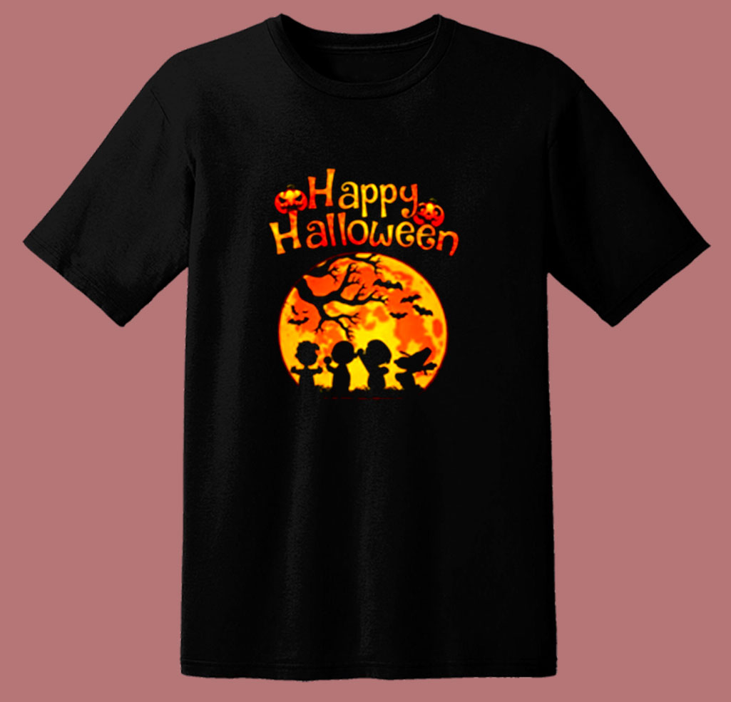 Peanut Snoopy And Charlie Brown Happy Halloween Pumpkin Moon 80s T Shirt