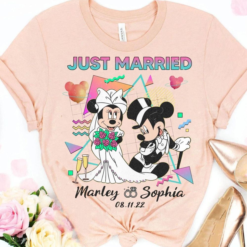 Personalized Retro 80s Just Married Mickey And Minnie Matching Vuitino Apparel