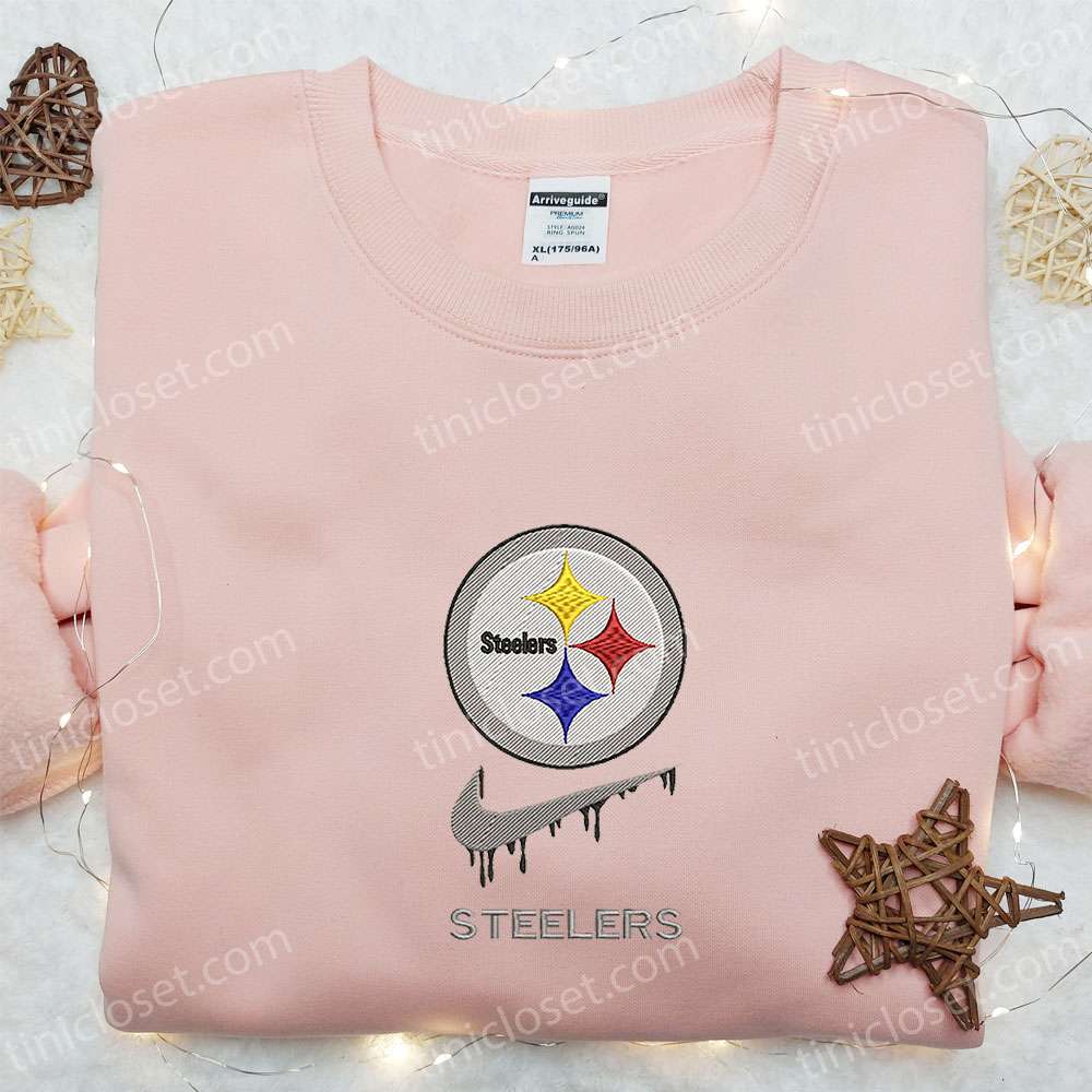 Pittsburgh Steelers X Nike Swoosh Drip Embroidered Shirt, Nfl Sports Embroidered Hoodie, Best Gift Idea