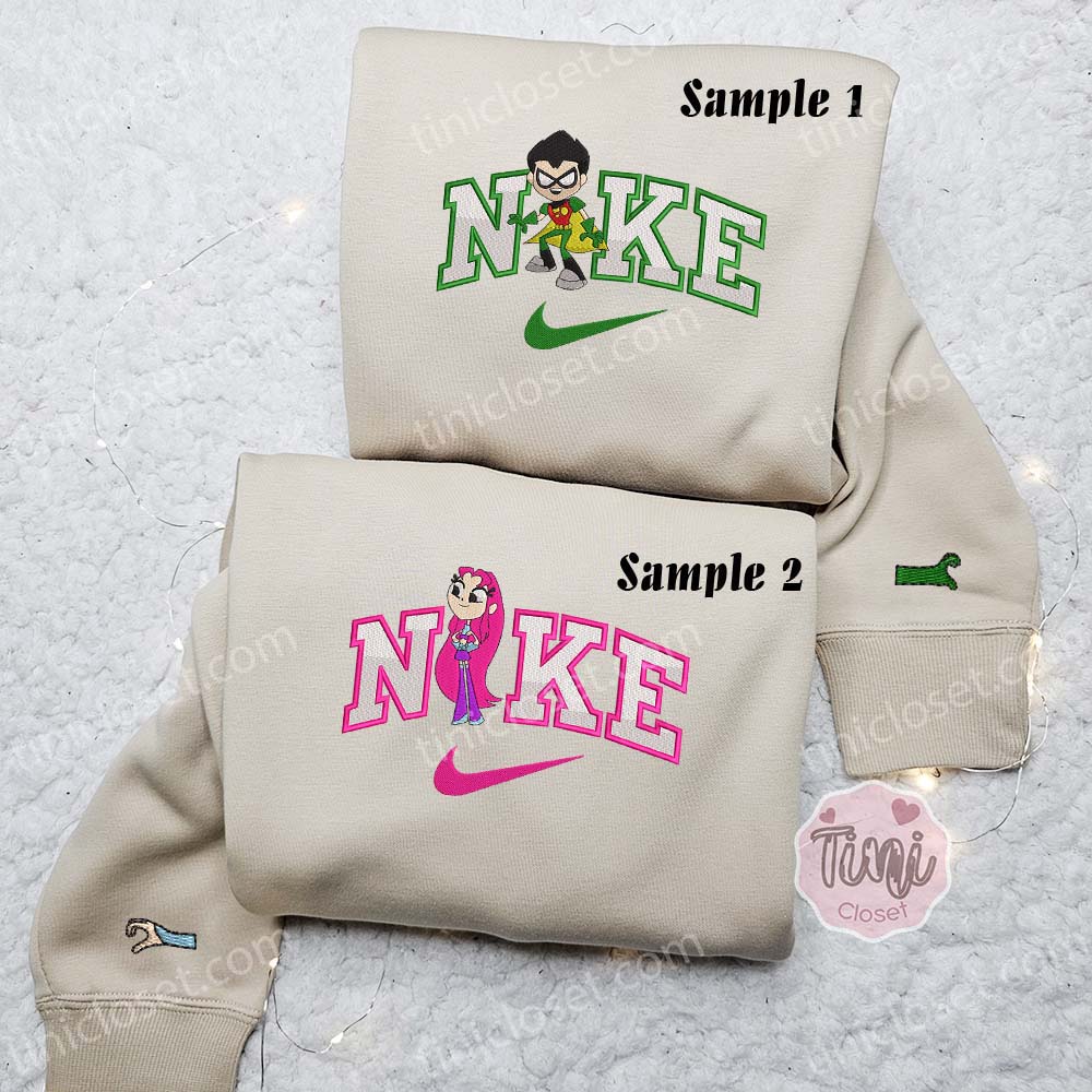 Robin And Starfire Teen Titans Cartoon Embroidered Couples Shirts