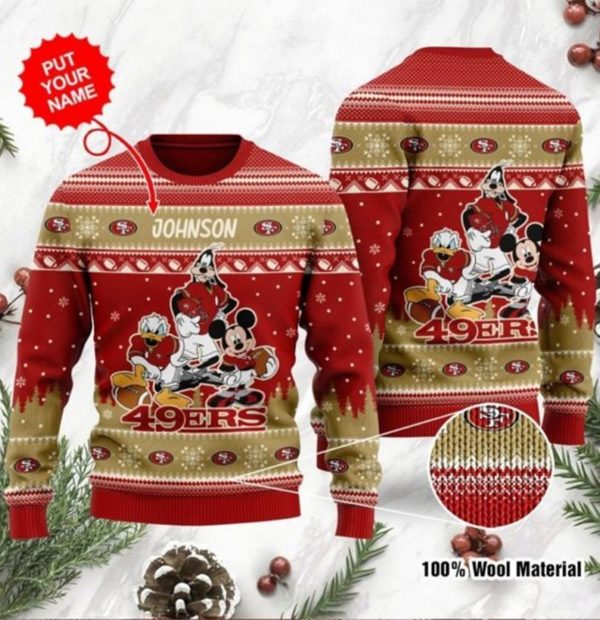 San Francisco 49ers Disney Donald Duck Mickey Mouse Goofy Custom Name Personalized Ugly Christmas Sweater