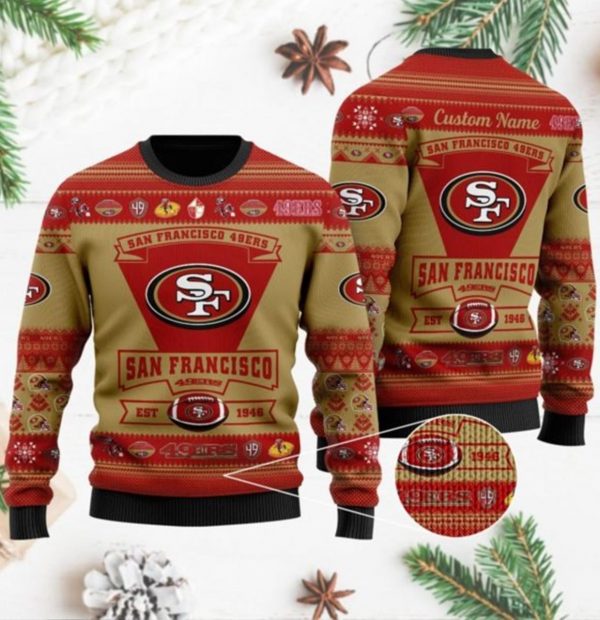 San Francisco 49ers Football Team Logo Custom Name Personalized Ugly Christmas Sweater