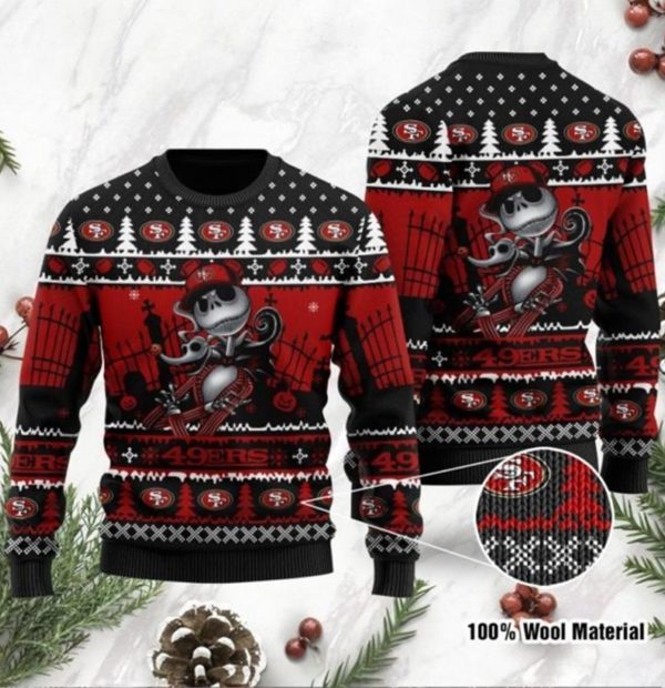 San Francisco 49ers Jack Skellington Halloween Ugly Christmas Sweater