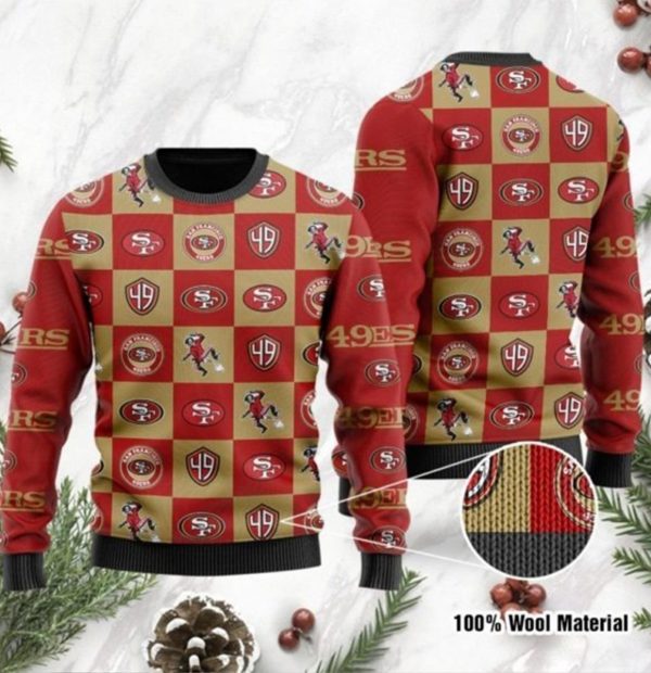 San Francisco 49ers Logo Checkered Flannel Design Ugly Christmas Sweater