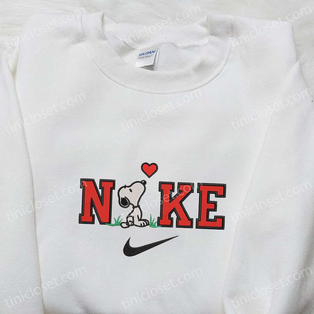 Snoopy With Heart X Nike Swoosh Embroidered Shirt, The Peanuts Cartoon Embroidered Hoodie, Best Valentine Gift Idea