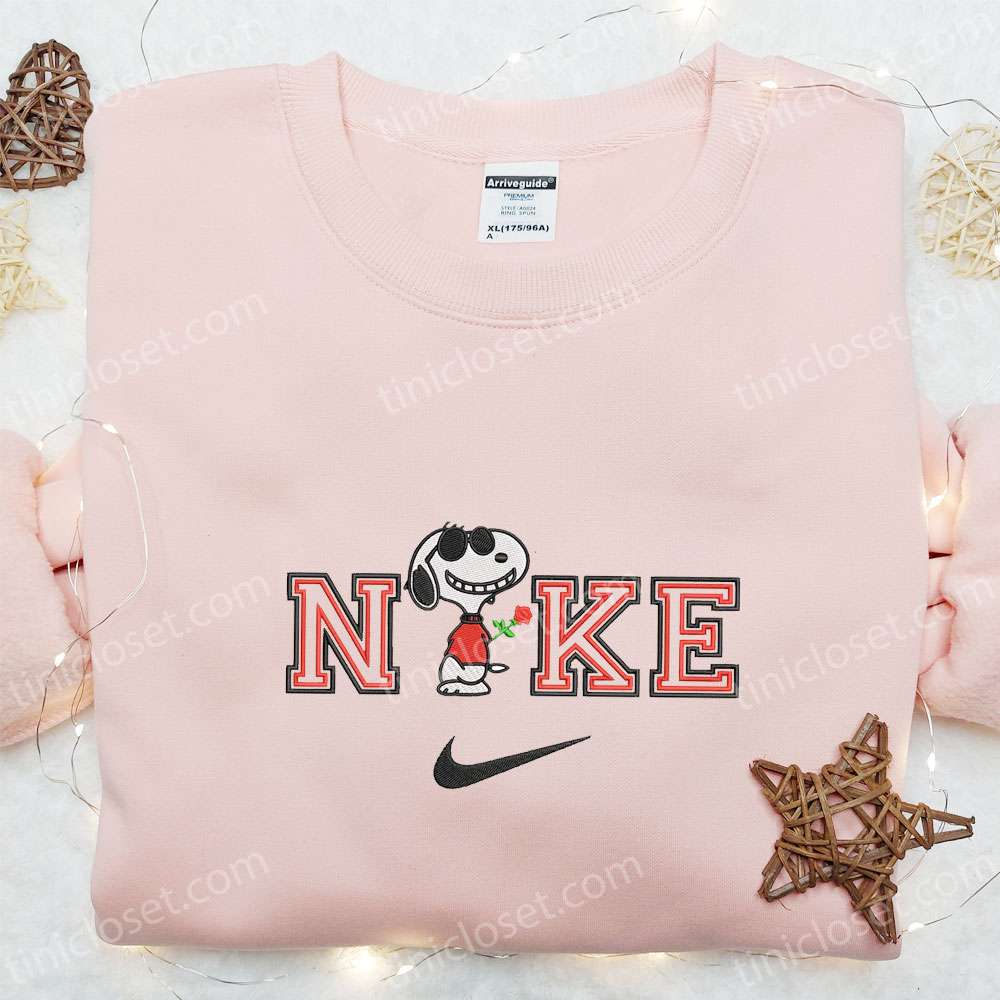Snoopy With Rose X Nike Embroidered Shirt, The Peanuts Cartoon Embroidered Hoodie, Best Valentine Gift Idea