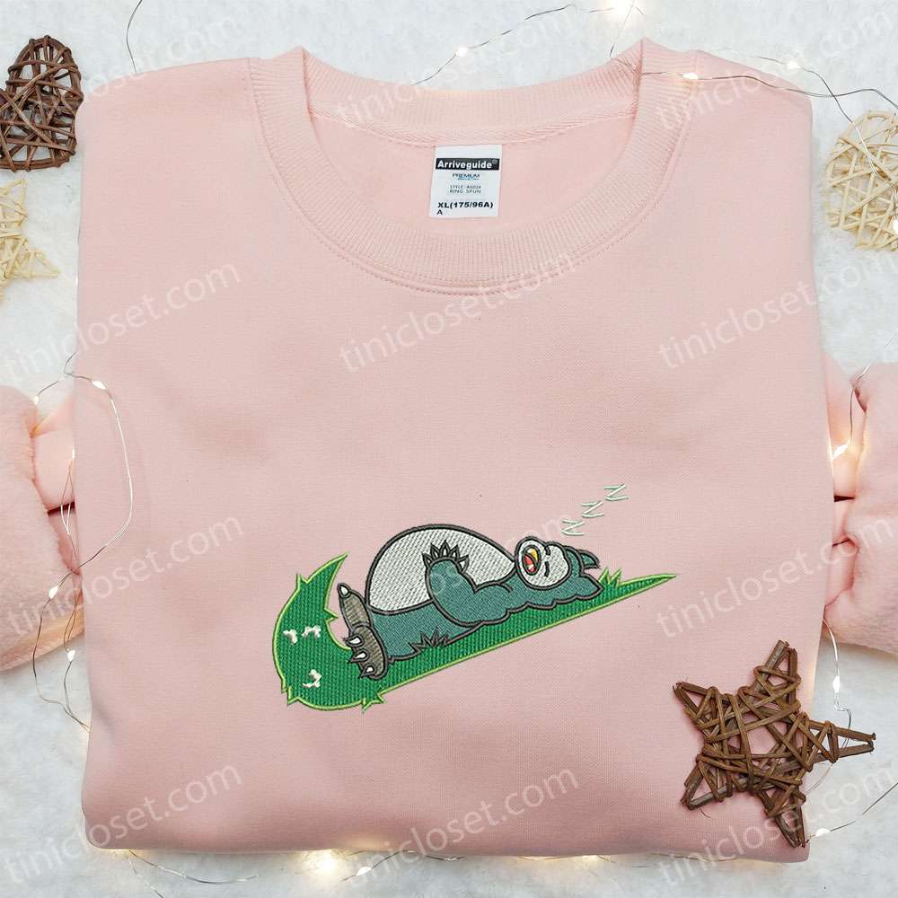 Snorlak X Nike Swoosh Embroidered Shirt, Pokemon Anime Embroidered Hoodie, Nike Inspired Embroidered Sweatshirt