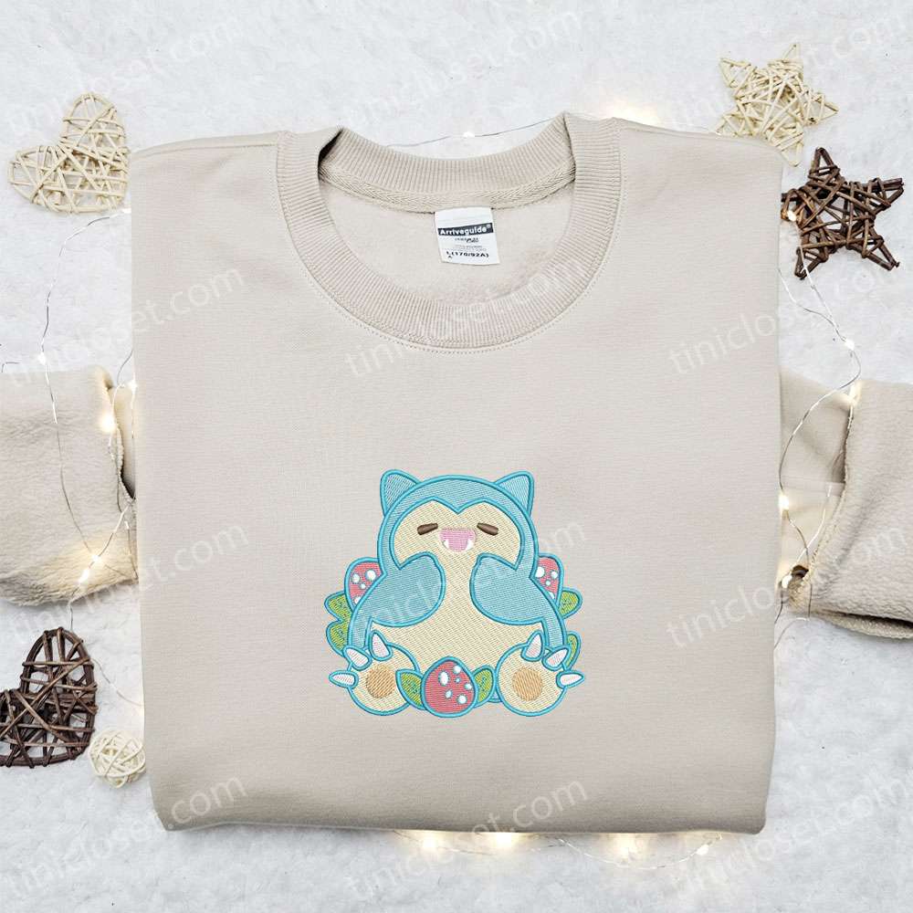 Snorlax And Strawberries Embroidered Shirt, Pokemon Anime Embroidered Hoodie, Best Gift Idea