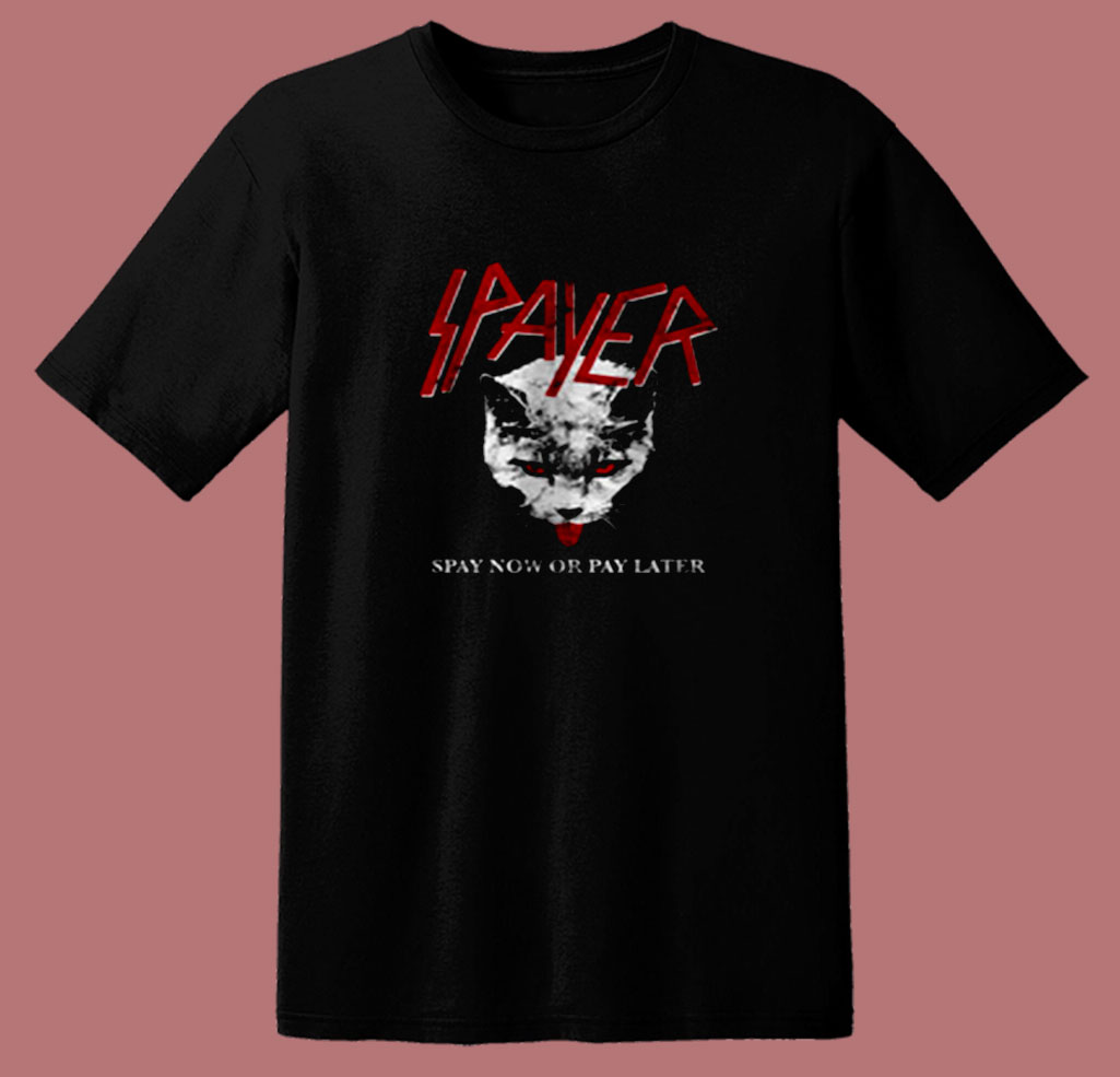 Spayer Funny Vintage Style Slayer Parody Cat 80s T Shirt