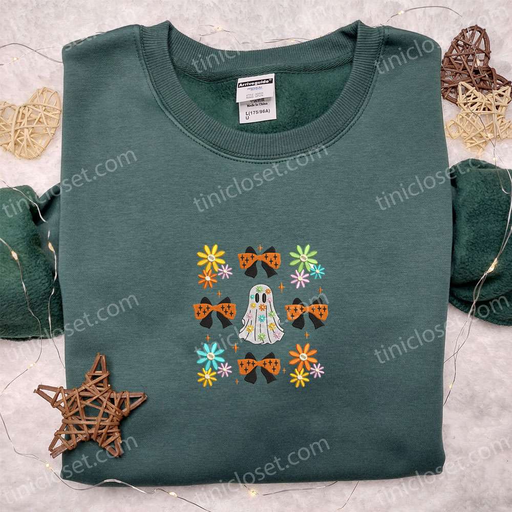 Coquette Flower Ghost Halloween Embroidered Shirt