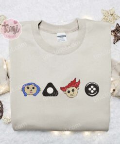 Coraline And Wybie Buttons Halloween Embroidered Shirt