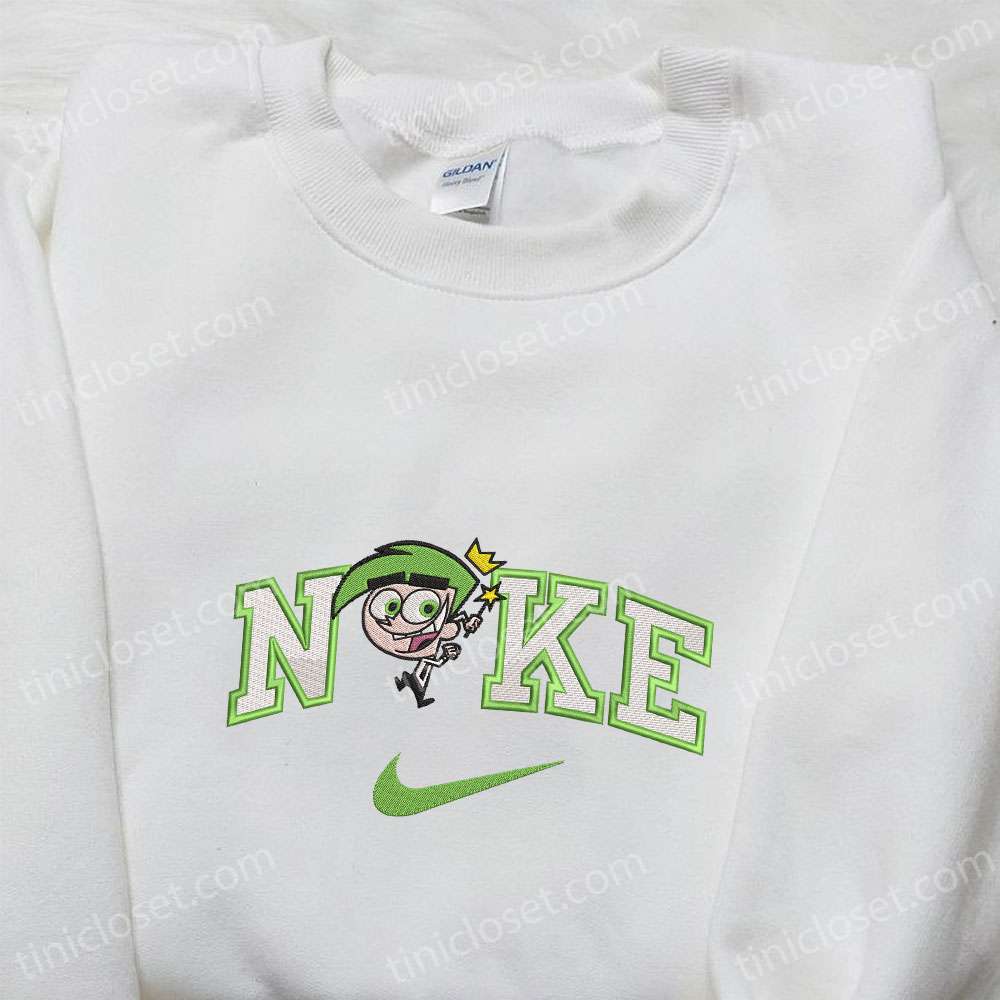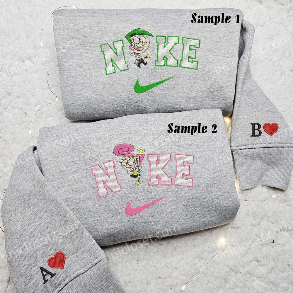 Cosmo And Wanda X Nike Couple Embroidered Shirt, Cartoon Embroidered Hoodie, Valentine’s Day Embroidered Sweatshirt
