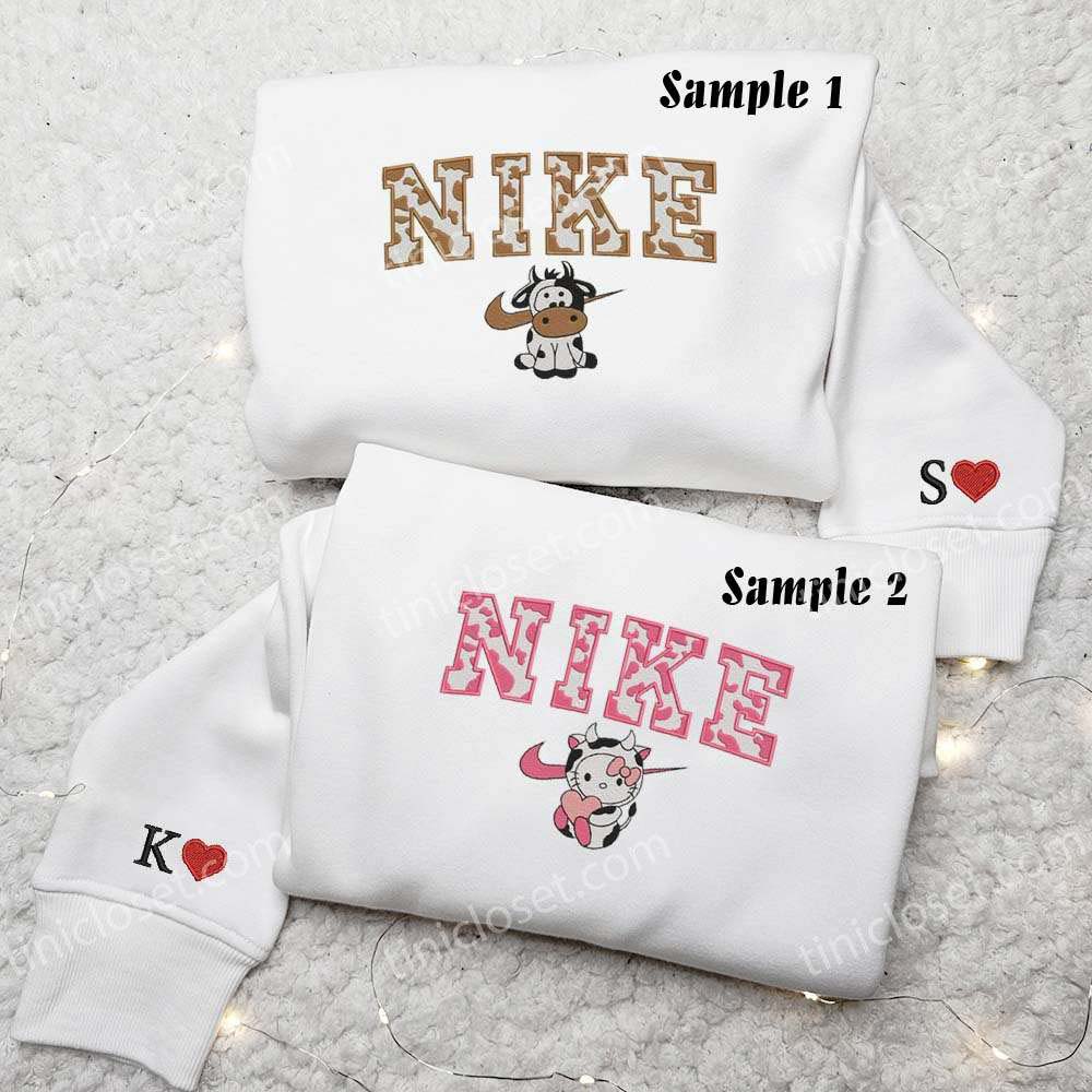 Cute Cow Hello Kitty Embroidered Couples Shirts