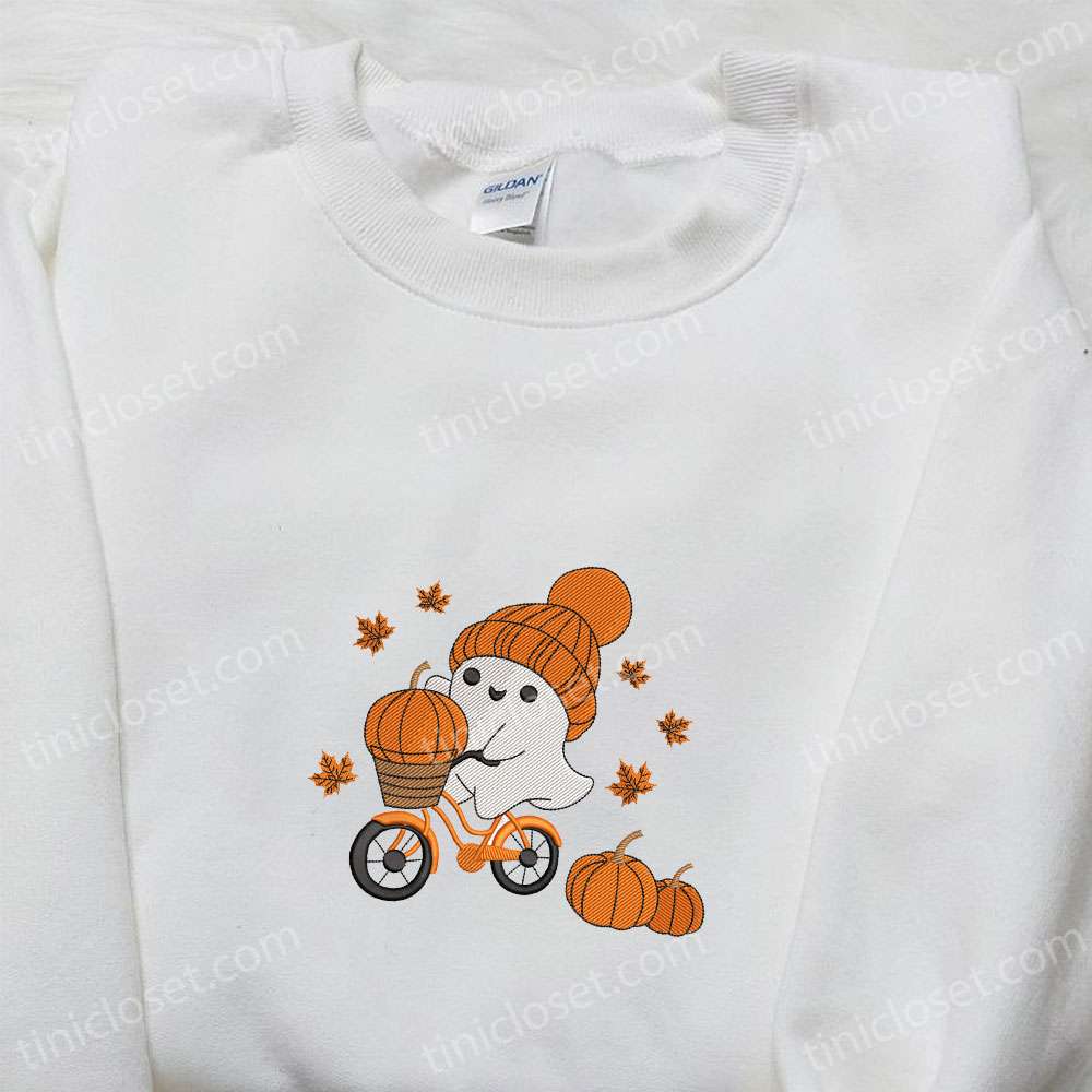 Cute Ghost Bicycle Pumpkin Halloween Embroidered Shirt