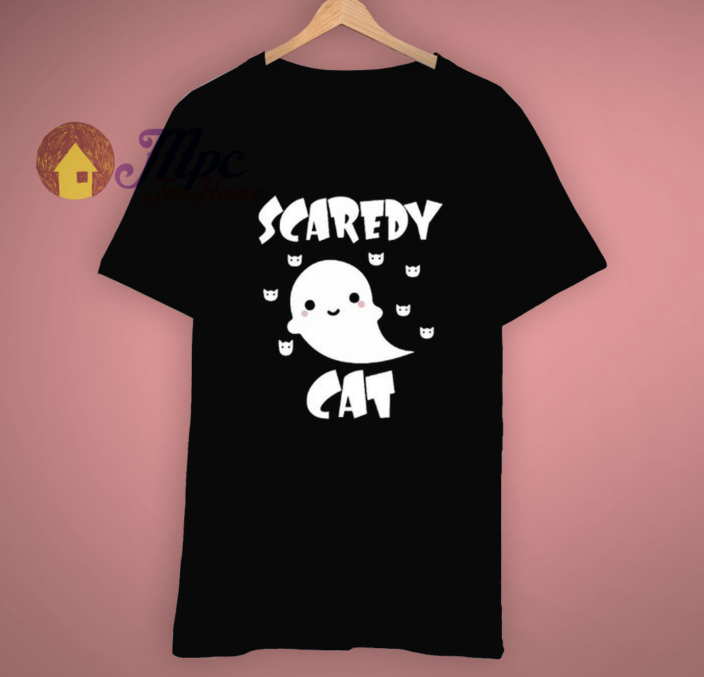 Cute Ghost Cartoon Scaredy Cat T Shirt