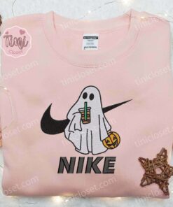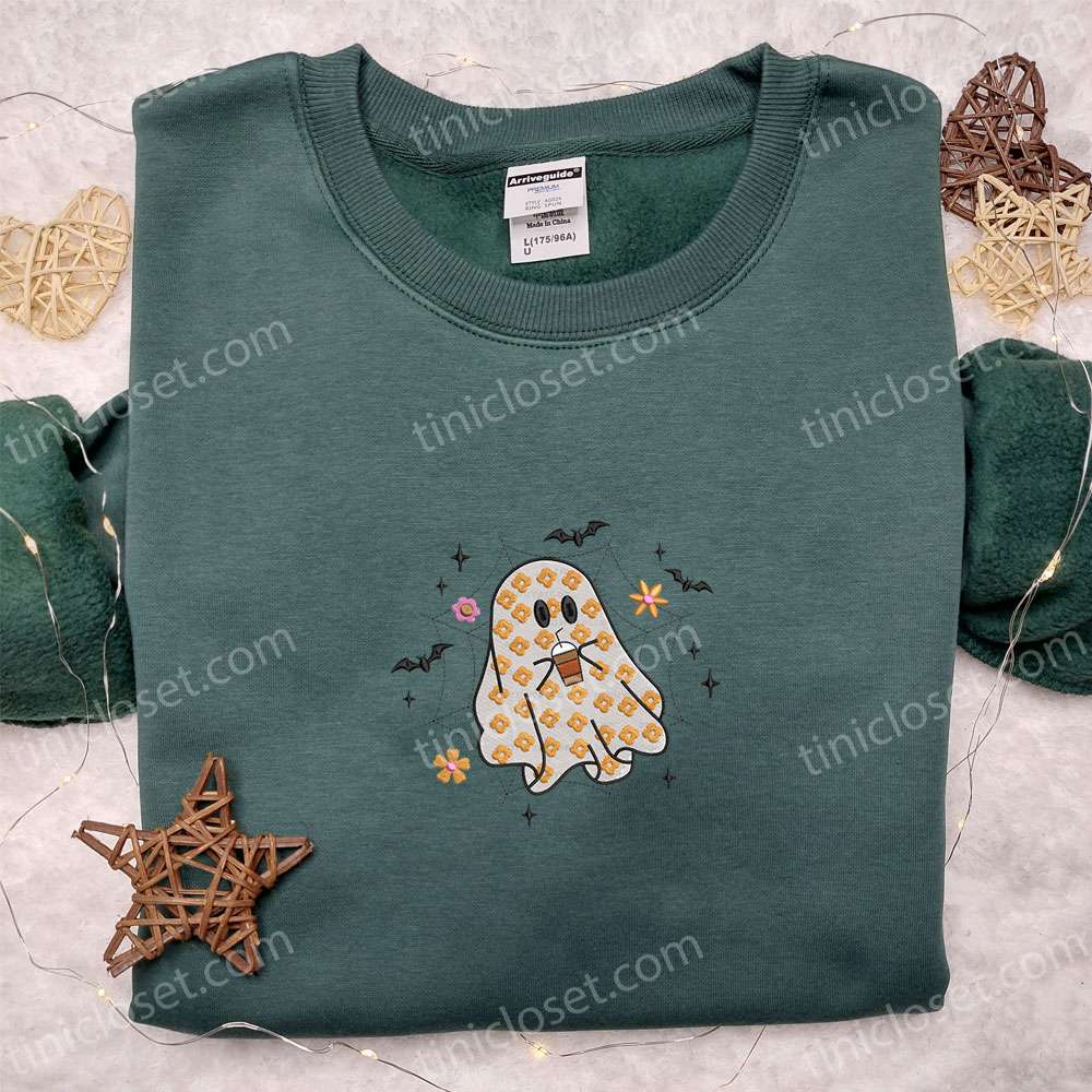 Cute Ghost Starbucks Coffee Drink Halloween Embroidered Shirt