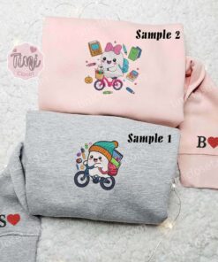 Cute Ghost On Bike Back To School Embroidered Couples Shirts