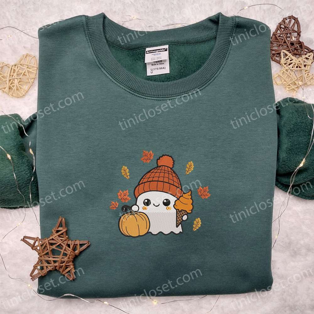 Cute Ghost Autumn Fall Halloween Embroidered Shirt