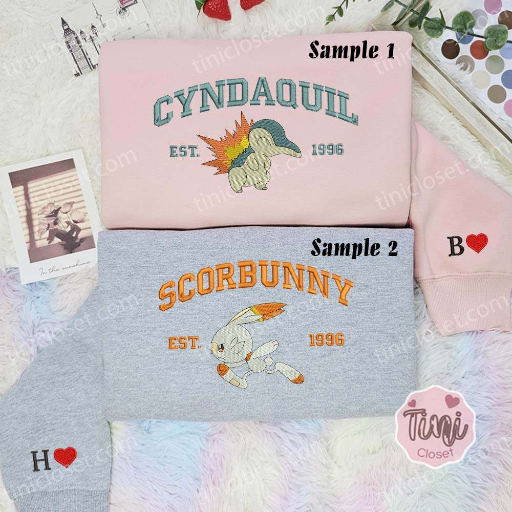 Cyndaquil And Scorbunny Est 1996 Pokemon Anime Embroidered Couples Shirts