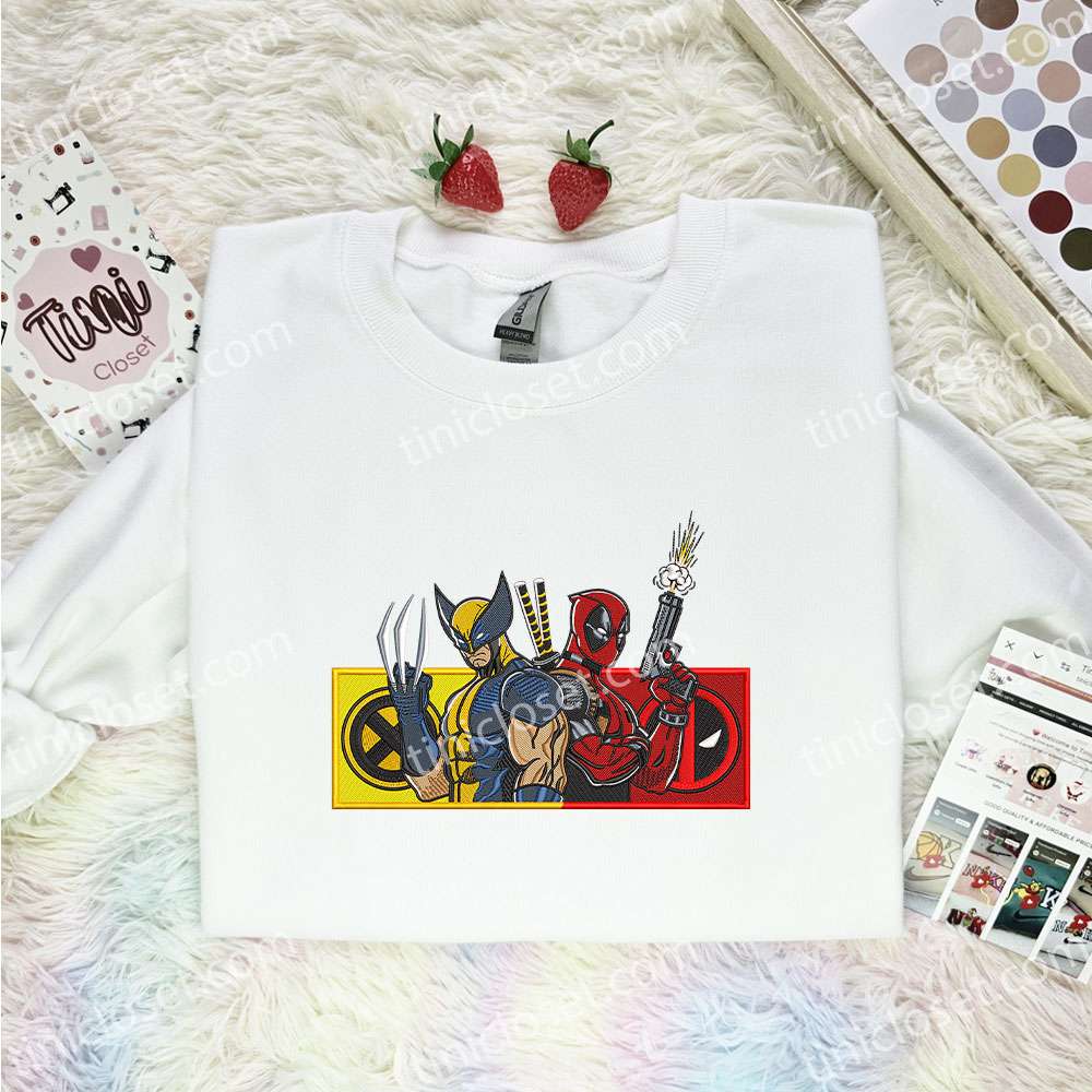 Deadpool And Wolverine Embroidered Shirt, Marvel Embroidered Hoodie, Movie Embroidered T-shirt