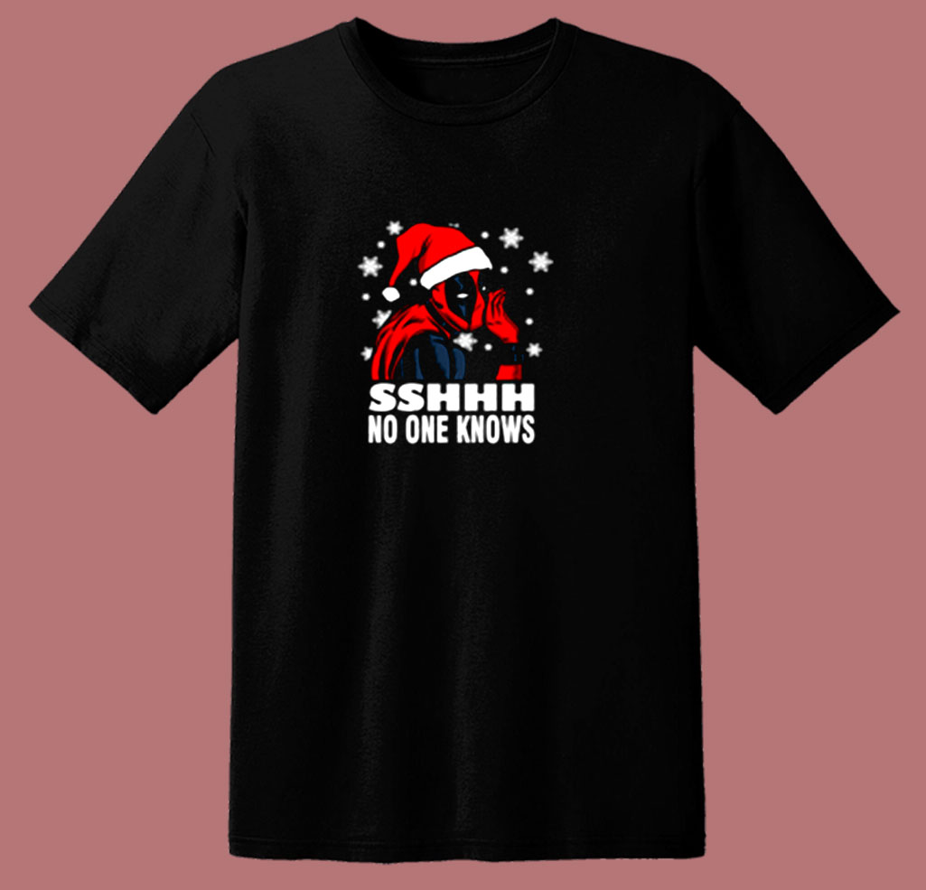 Deadpool Christmas Sshh No One Knows 80s T Shirt