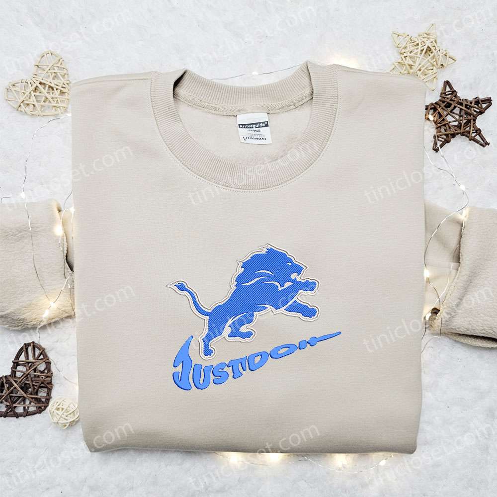 Detroit Lions Just Do It Swoosh Nfl Sports Embroidered Shirt