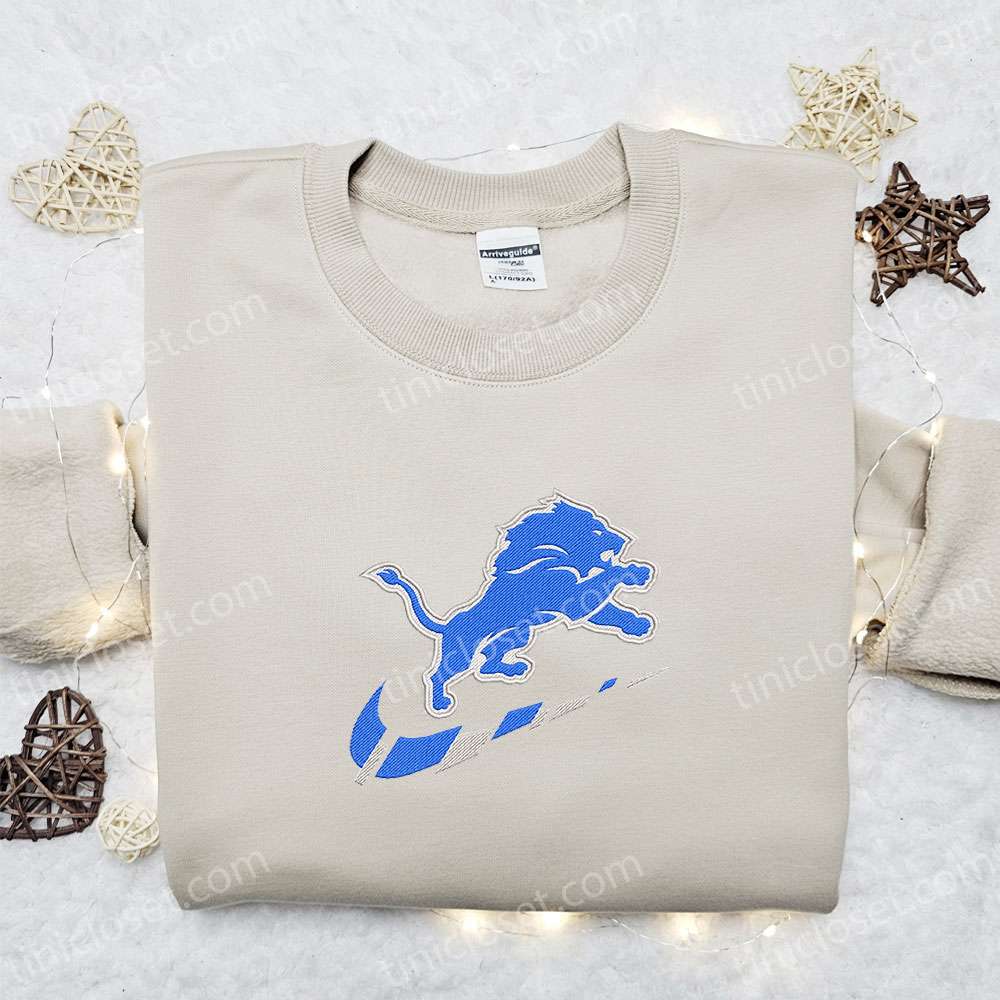Detroit Lions Swoosh Nfl Sports Embroidered Shirt
